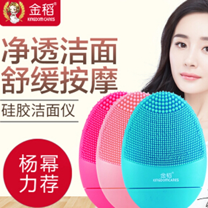 全部商品>个护健康>洁面仪>金稻洁面仪毛孔清洁器家用超声波洗脸仪趣味洗脸刷防水硅胶洁面刷308B玫红色