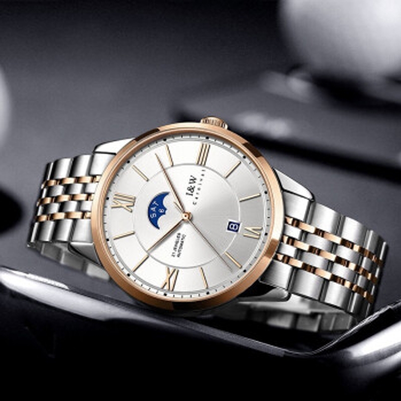 全部商品>钟表>I&W>I&W 男士自动机械表皇家系列双日历镂空防水腕表 间金白面钢带 爱沃驰IW528腕表送男友