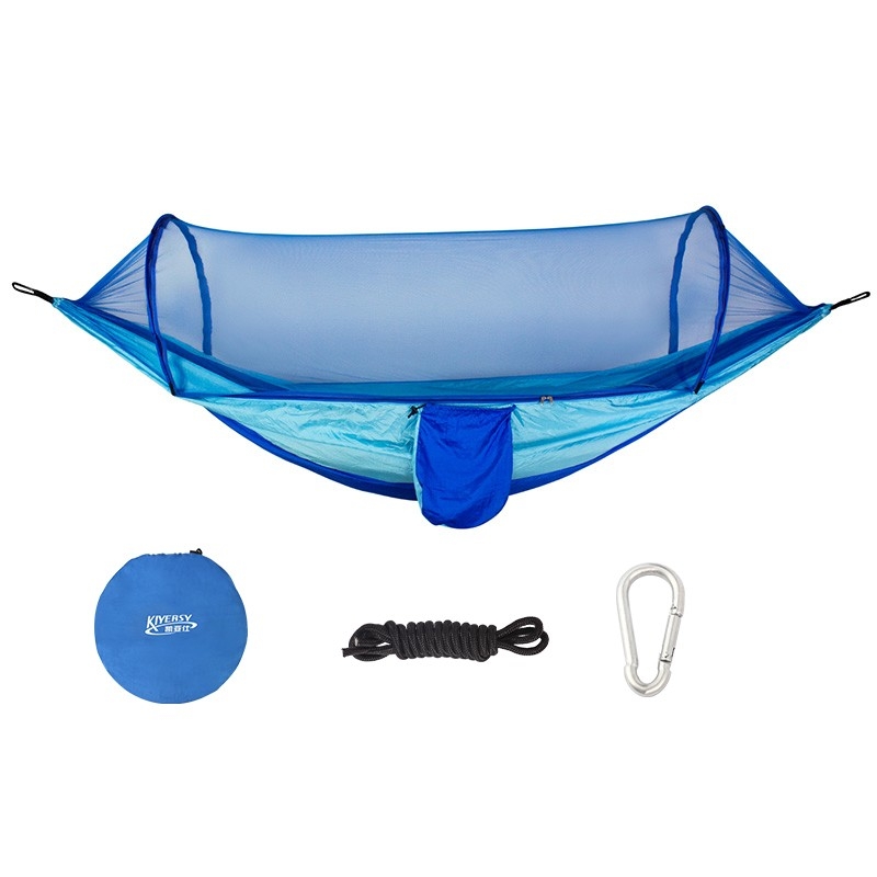 全部商品>户外装备>户外装备>凯亚仕 自动防蚊吊床 户外防蚊晒遮阳速开网单双人便携野餐家用秋千防侧翻 蓝色【有顶棚】