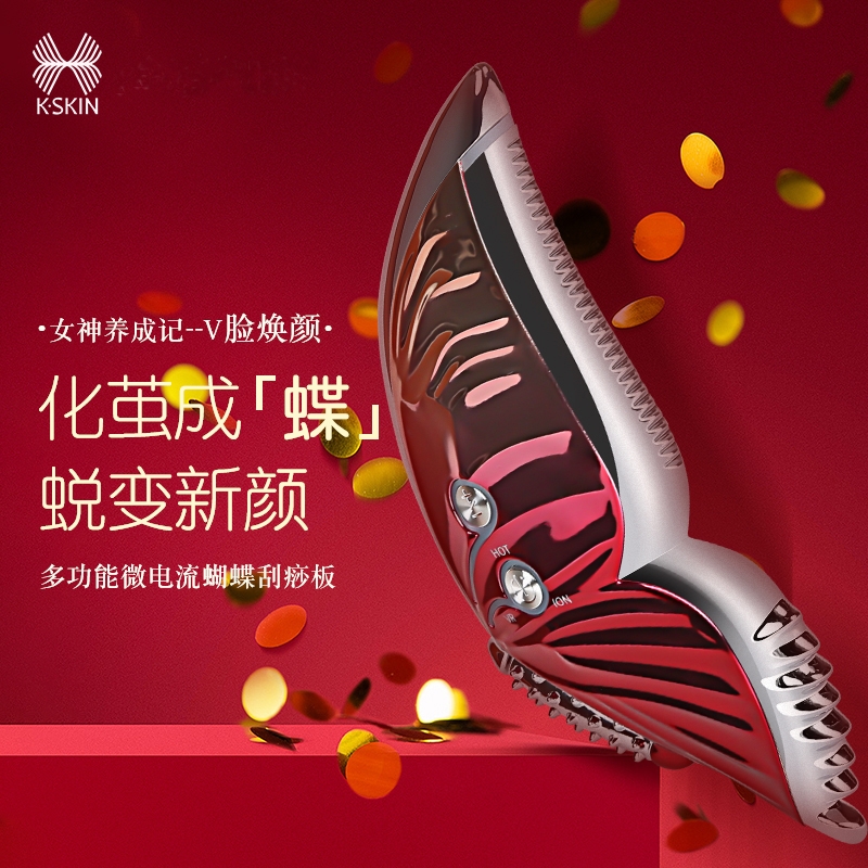全部商品>个护健康>美容器>K-SKIN 金稻渐变刮痧板美容微电流温热导入家用 脸部滚轮提拉震动V脸女礼 KD887渐变色