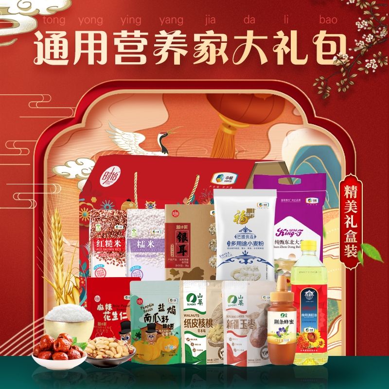 全部商品>粮油调味>中粮>中粮福临门 中粮家宴通用营养家大礼包D型 米面粮油杂粮坚果礼盒4592g+900ml