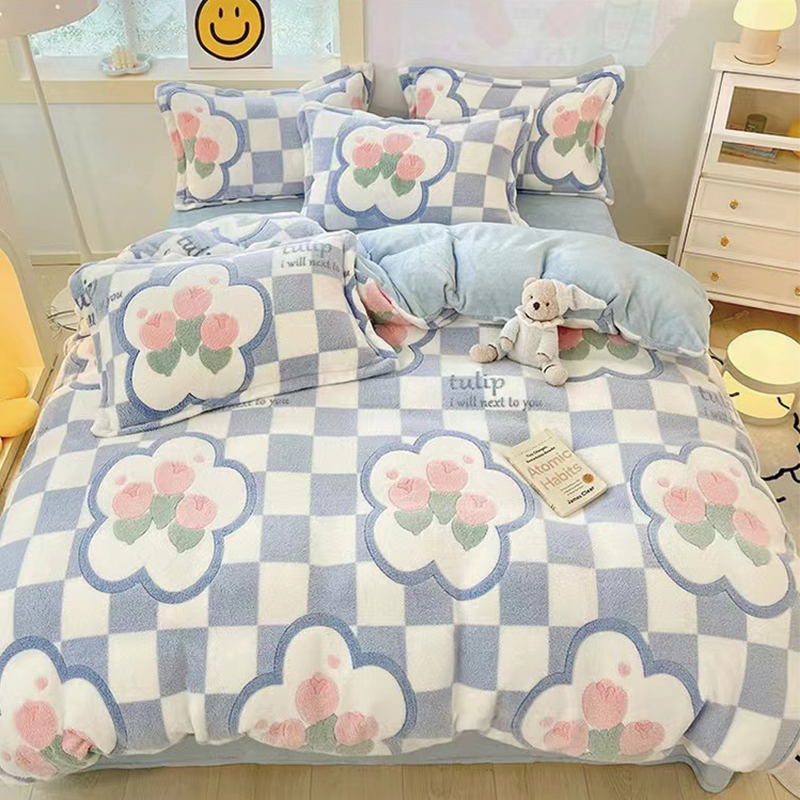 全部商品>自营产品>红鸾家纺>红鸾 冬季珊瑚绒被套牛奶绒四件套加厚1.8m床单款
