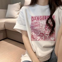 2023春夏白色打底衫女日系动漫印花纯棉短袖t恤宽松潮牌情侣装