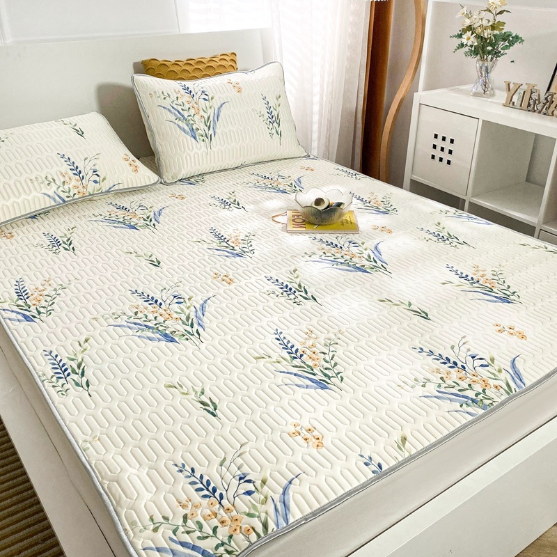 红鸾 透气凉感丝乳胶凉席三件套可水洗纯色简约轻奢风