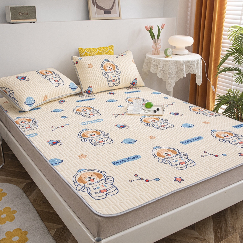 红鸾 透气凉感丝乳胶凉席三件套可水洗纯色简约轻奢风