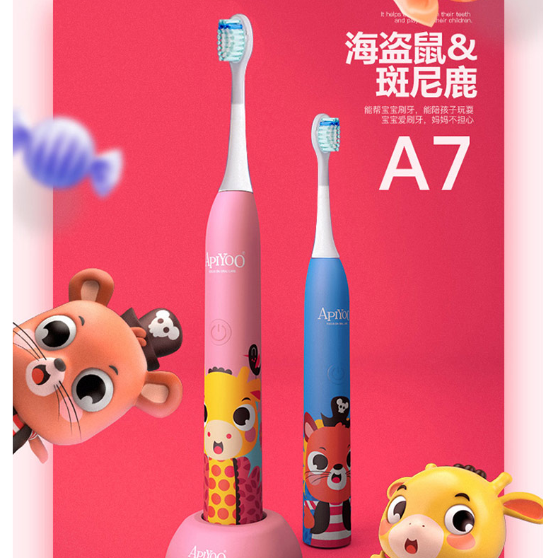 全部商品>个护健康>电动牙刷>艾优(Apiyoo)儿童电动牙刷 宝宝学生电动牙刷声波震动3-12岁小孩 IPX7级防水粉色班尼鹿(自带刷头*2)